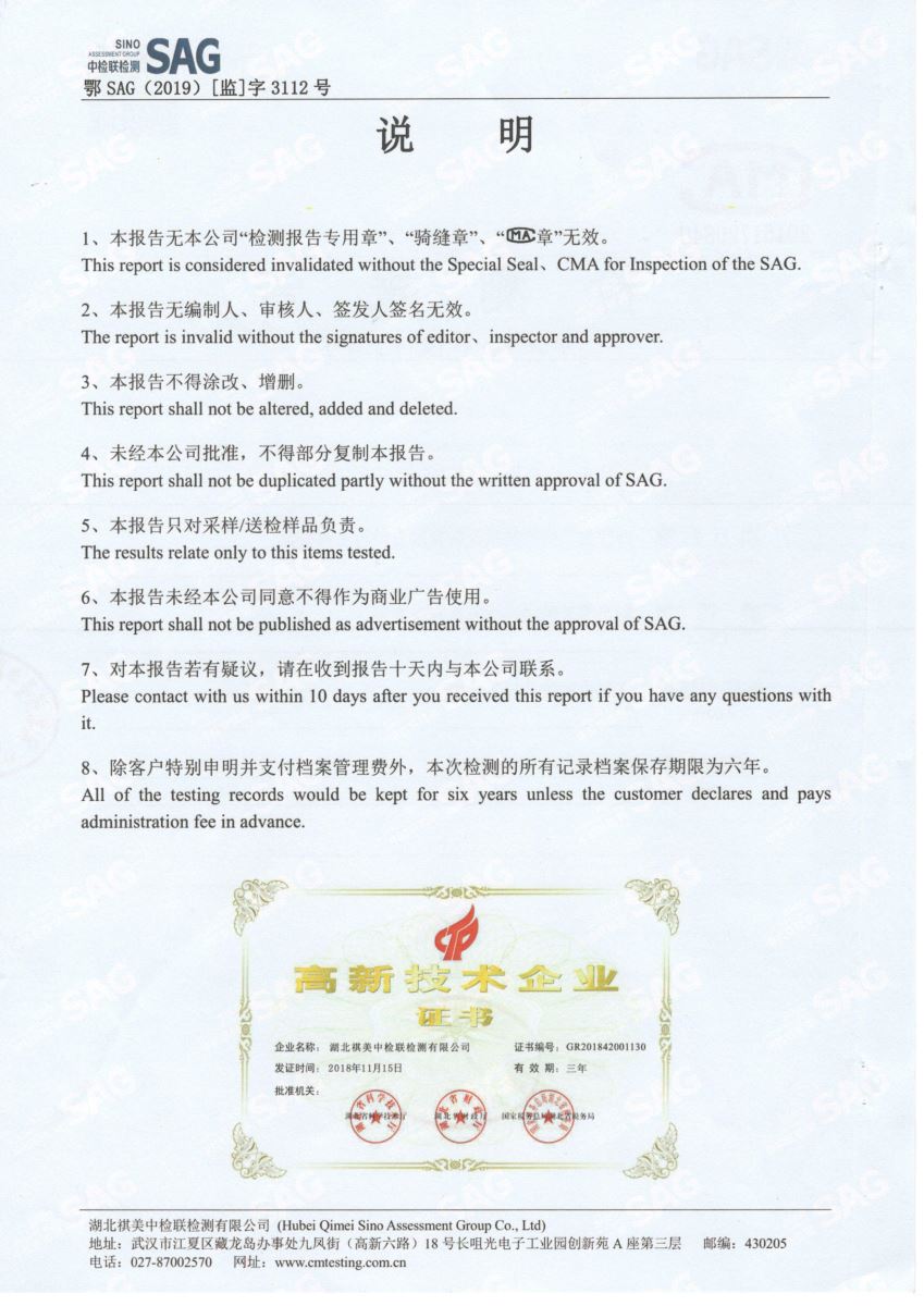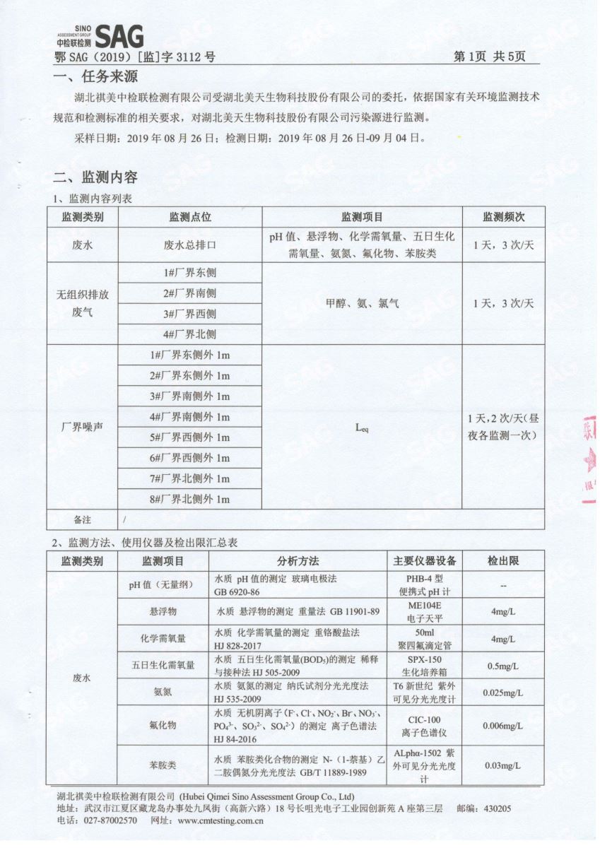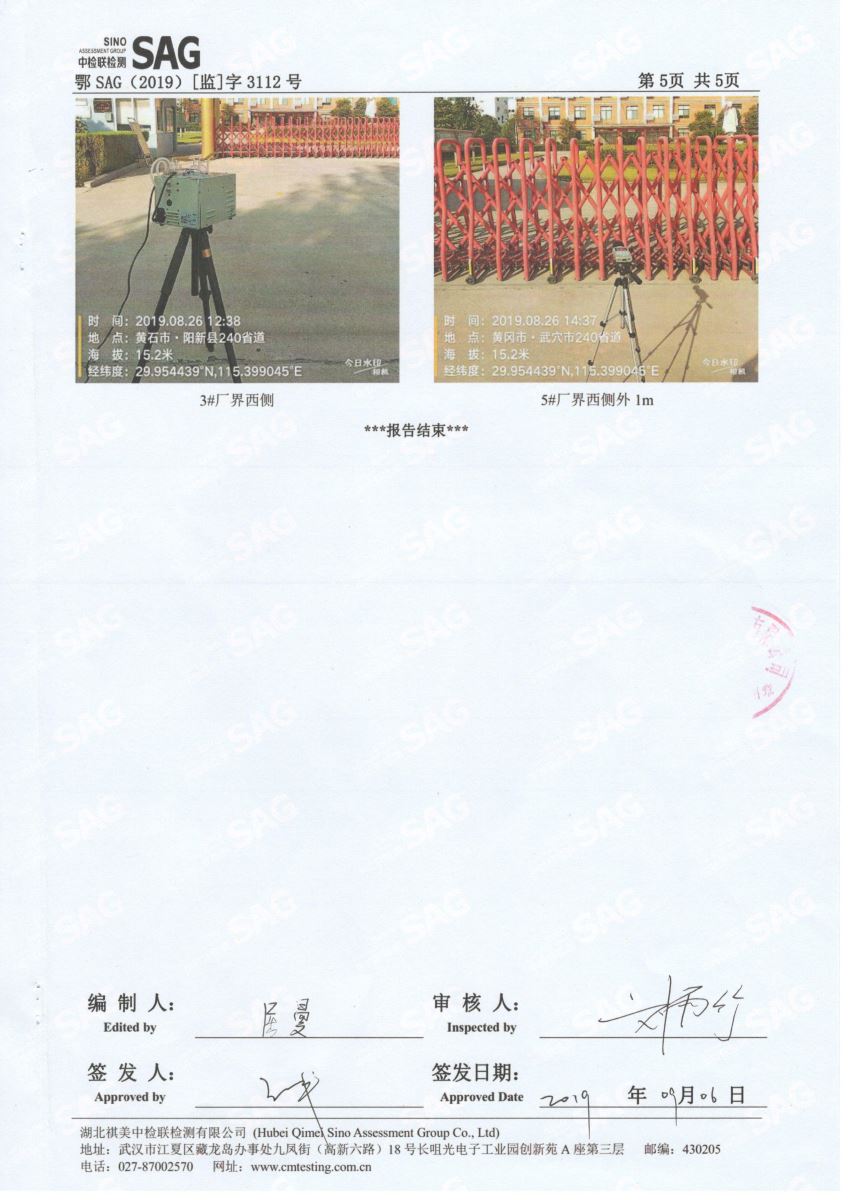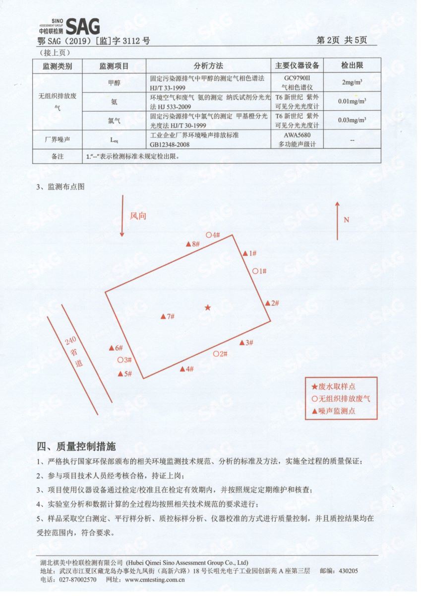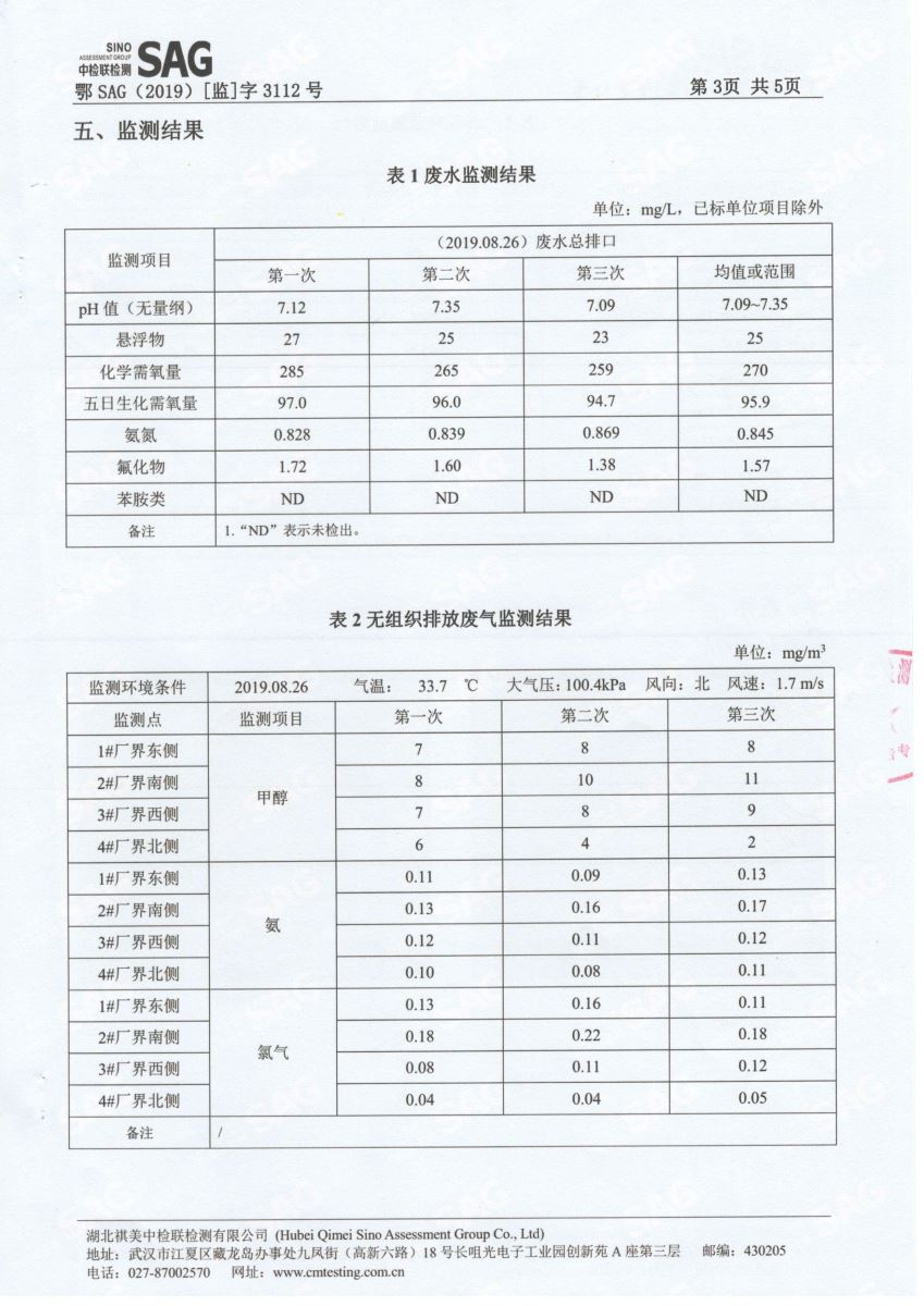 2019年第三季度,公司按照国家企业安全生产标准,对公司所排出的污染源,委托第三方进行抽样检测,详细的检测报告如下